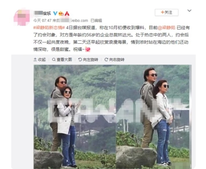 2020年11月,梁静茹被曝光与大她14岁的林达光恋爱,当时热恋中的两人不仅一起共度甜蜜夜晚,还在欣赏海景的时候,站在海边不惧镜头当众热吻,一副恩爱模样。