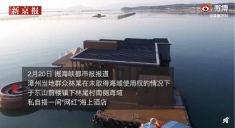 此前报道 漳州东山网红海上漂移酒店被查:未取得海域使用权证书 被责令恢复原状