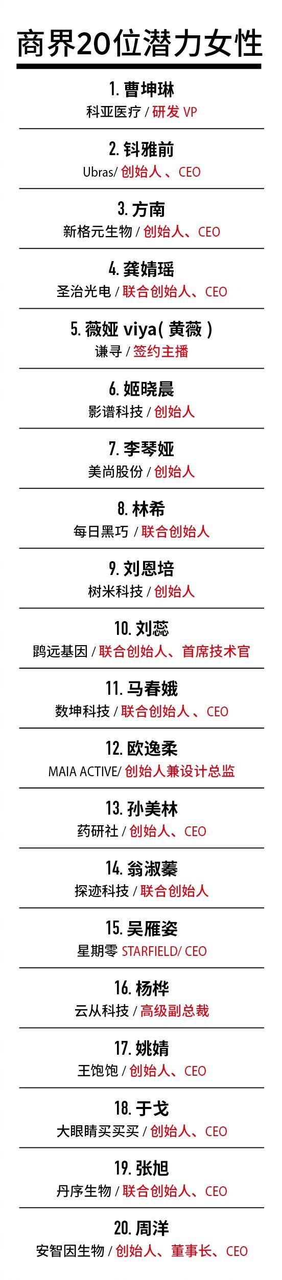 恭喜!薇娅登福布斯中国商界潜力女性榜