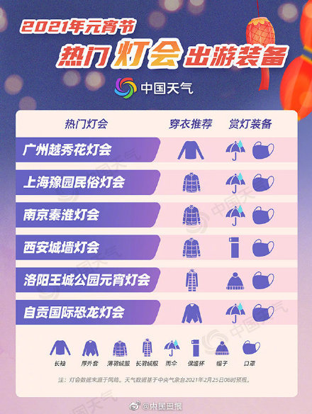 【2021元宵赏灯赏月指数地图新鲜出炉!速来围观】明天元宵节,快收下这份牛年元宵最全赏灯和赏月地图,看你家明天是看月伴灯,还是雪打灯?今年依然是十五的月亮十六圆,哪里天公作美可以看到满月?出门看灯会应该怎么穿?戳图了解欢欢喜喜过元宵!@中国天气