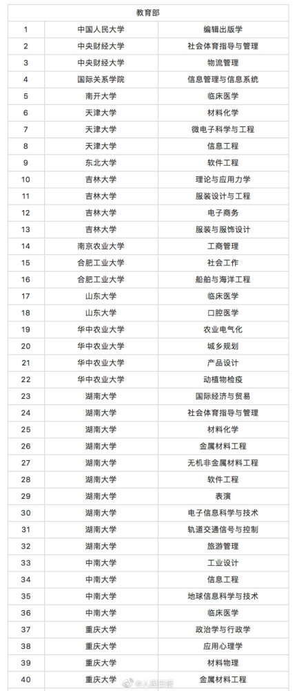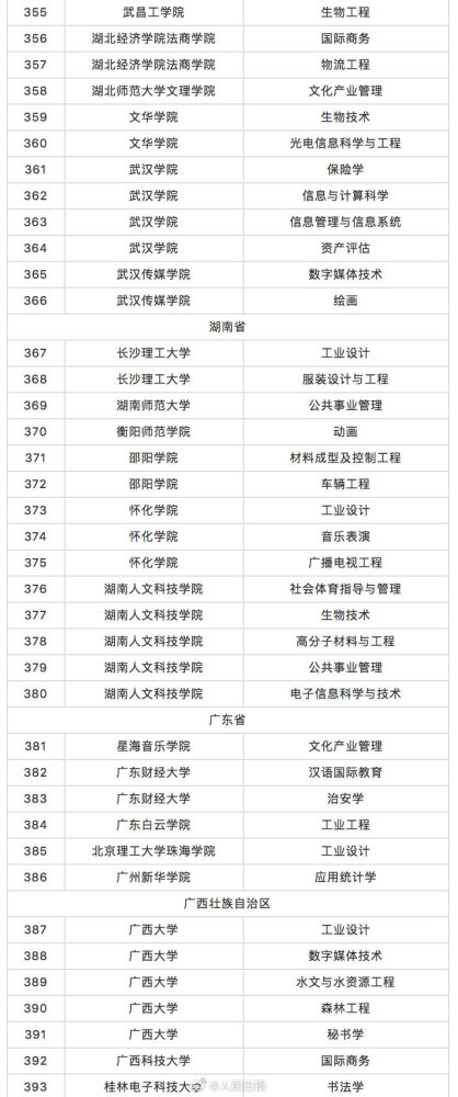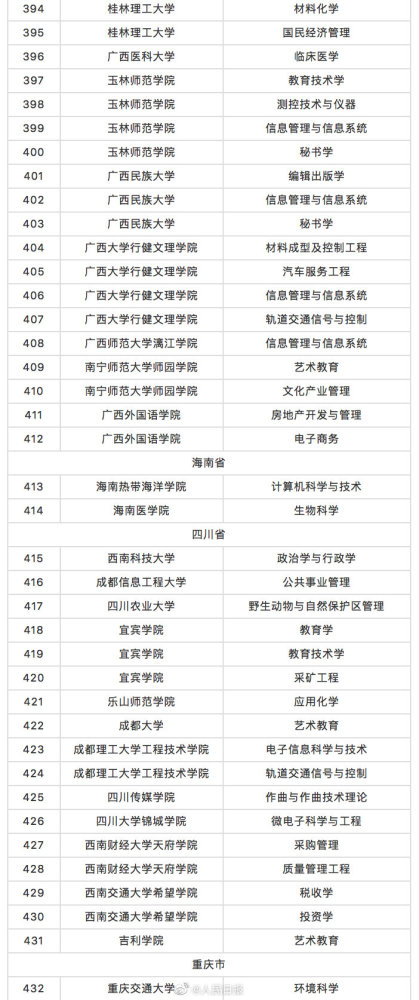 3月1日,教育部公布2020年度普通高等学校本科专业备案和审批结果,经高等学校专业设置与教学指导委员会商讨,共撤销包括中国人民大学编辑出版学,中央财经大学社会体育指导与管理、物流管理,国际关系学院信息管理与信息系统等518个高校本科专业(下附专业名单)。这意味着今后高考志愿填报学校专业选择阶段将不再有以下518个专业,如果有意向报考这些专业的同学,还请尽快选择其他专业,以免专业院校选择出现问题,耽误报考。