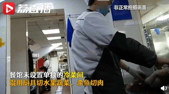 (原标题:触目惊心!小龙坎火锅用扫帚捣制冰机后用来盛黄喉毛肚)