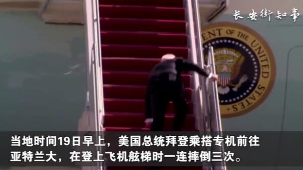 当地时间3月19日,美国总统拜登在乘坐“空军一号”时,在舷梯上不慎跌倒3次。白宫发言人随后表示拜登身体没有问题,摔倒可能是因为风太大了。