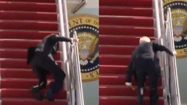 据雅虎新闻网的现场视频显示,拜登在马里兰州的安德鲁斯联合基地登飞机舷梯时,先是在登上几节台阶后不慎摔倒,之后拜登站起来走了两步,又连摔了两次。都是自行起身,看似没有大碍。随后拜登继续走完了剩下的台阶,擦去了膝盖上的灰尘,在机舱门口前向大家敬礼致意后离开。
