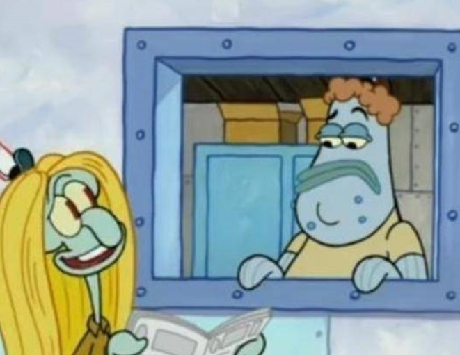 3、章鱼哥虽然是光头,但曾有过黄色长卷发。