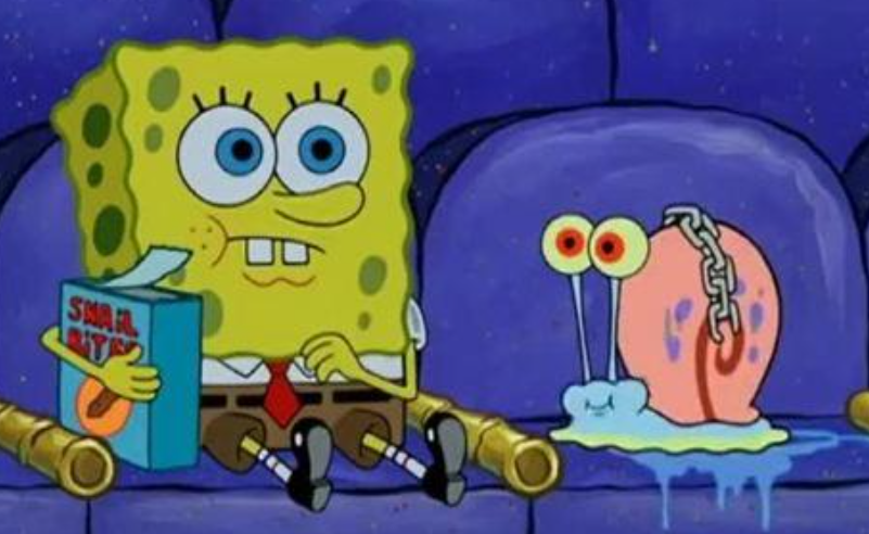 4、海绵宝宝的宠物蜗牛,拥有理解自然语言并进行沟通的能力。虽然是蜗牛,但偶尔会穿布鞋,所以底部是有藏脚的。内壳藏有海绵宝宝的一些东西小蜗的照片、吃饭用的时钟及黏液。