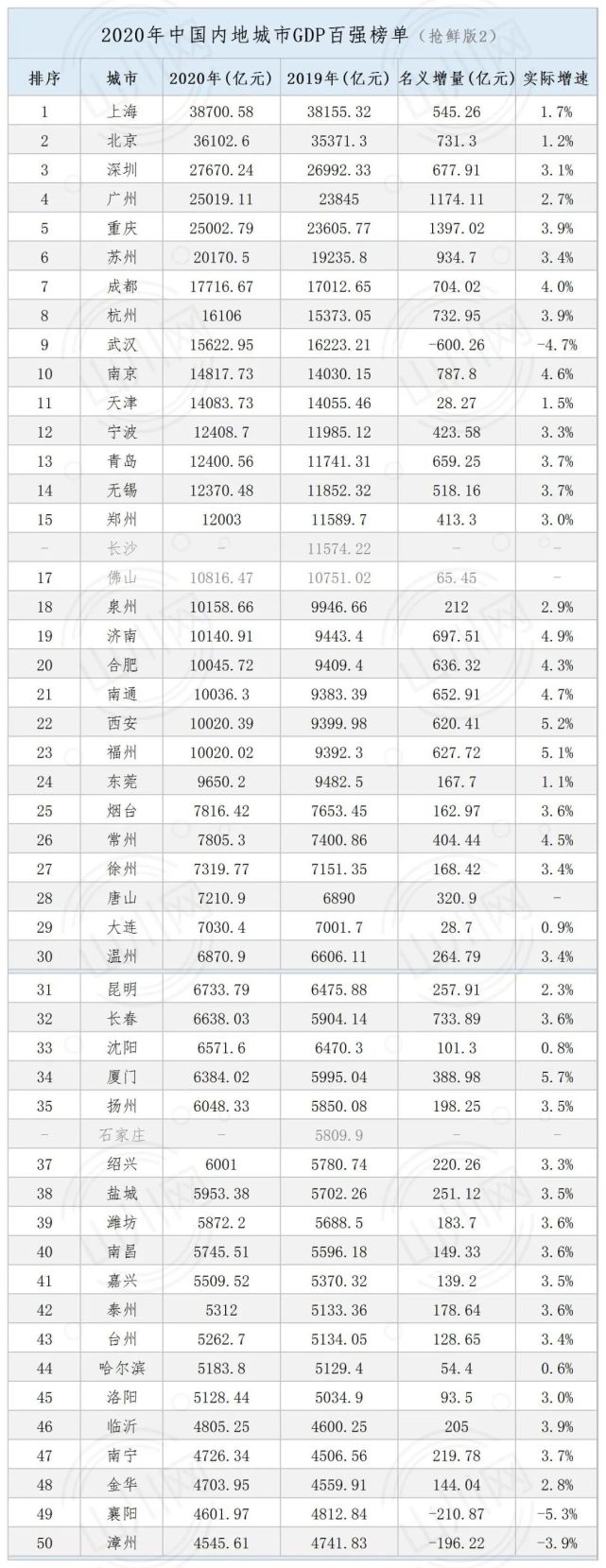 山川网:昨天,我们已经安排推送了《2020中国城市GDP百强榜抢先看:入围门槛升至2800亿元》,以抢鲜版的形式向大家推送了对应的2020年度中国内地GDP百强城市参考名单。