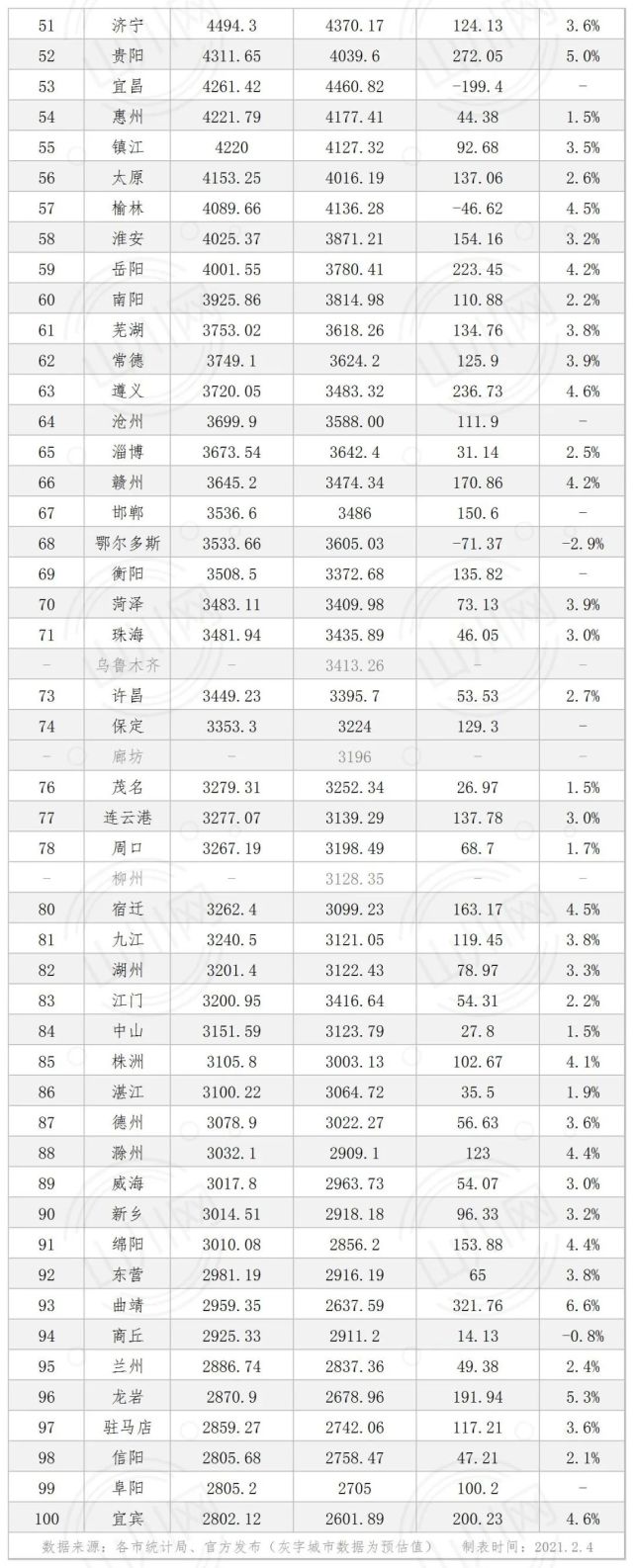截至今日,伴随着又一批年度GDP在2800亿元上下城市的数据公布,百强城市名单榜尾处部分城市出现了变化,所以我们今天继续为大家安排经过更新后的抢鲜版第2版,值得大家重点关注的就是榜尾部分城市的相应变化。