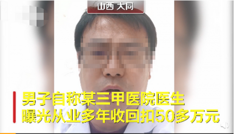 山西一三甲医院医生自爆收回扣50多万,医院纪委回应