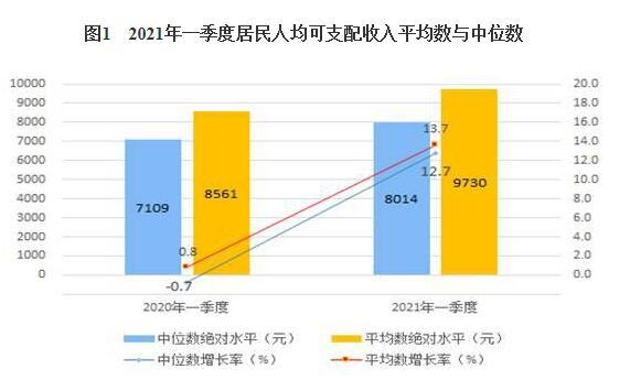 一季度,全国居民人均可支配收入中位数8014元,增长12.7%,中位数是平均数的82.4%。其中,城镇居民人均可支配收入中位数11090元,增长10.5%,中位数是平均数的84.5%;农村居民人均可支配收入中位数4340元,增长19.7%,中位数是平均数的80.4%。