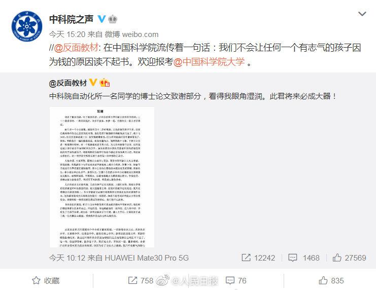中科院一篇博士论文致谢走红:把书念下去,然后走出去,不枉活一世