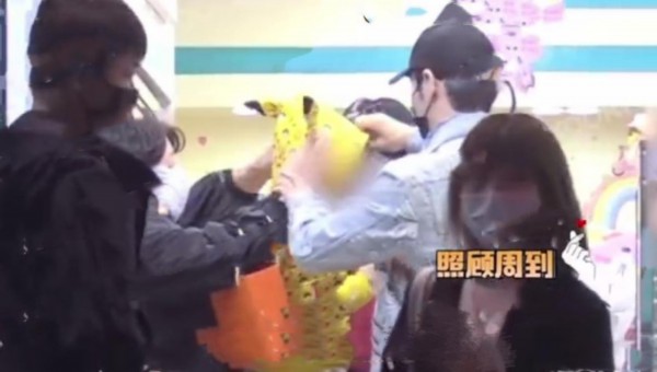 Baby带着小海绵上车,临行前黄晓明再次摸了摸儿子的头,并叮嘱了妻子几句,而后依依不舍地和工作人员乘坐另外一辆车。