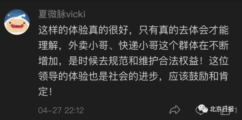 近日,纪录片《我为群众办实事之局处长走流程》播出。在该纪录片中北京市人社局劳动关系处副处长王林拜师外卖小哥体验了一天送外卖的感觉。