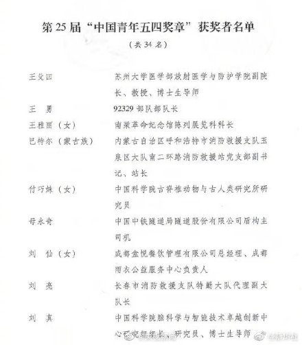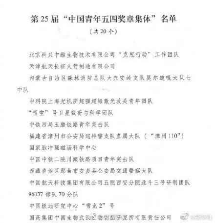 【卫国戍边英雄获评五四奖章集体】在五四青年节来临之际,共青团中央、全国青联共同颁授第25届“中国青年五四奖章”。决定授予王殳凹等30名同志第25届“中国青年五四奖章”,授予北京科兴中维生物技术有限公司“克冠行动”工作团队等14个青年集体第25届“中国青年五四奖章集体”。确认新时代卫国戍边英雄群体等6个青年集体获第25届“中国青年五四奖章集体”、刘烨瑶等4名同志获第25届“中国青年五四奖章”。(新华社)