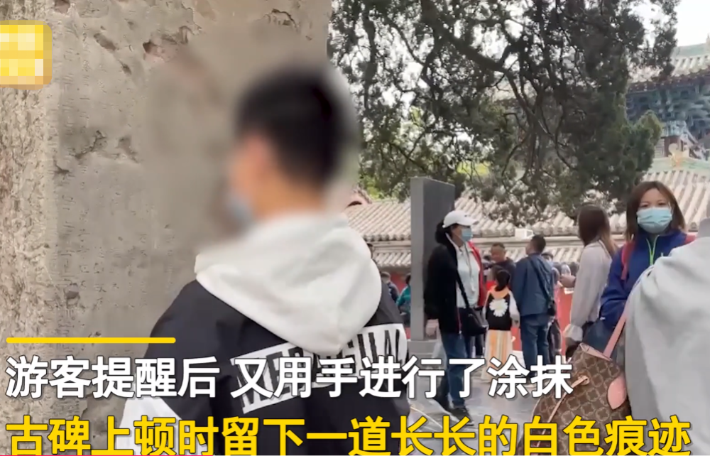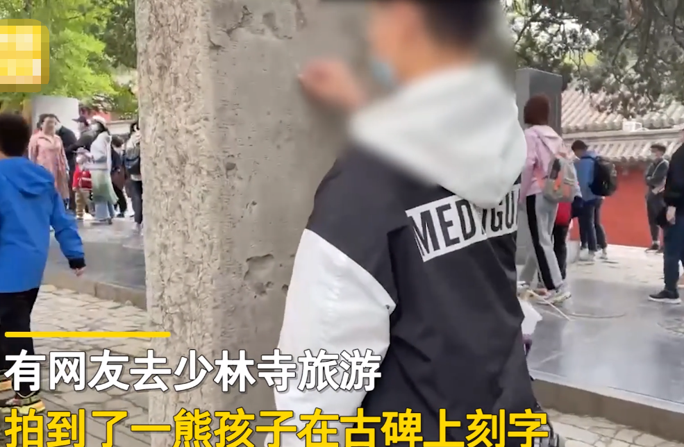 河南登封:少林寺500多年古碑遭熊孩子刻画,被劝阻后仍不罢手