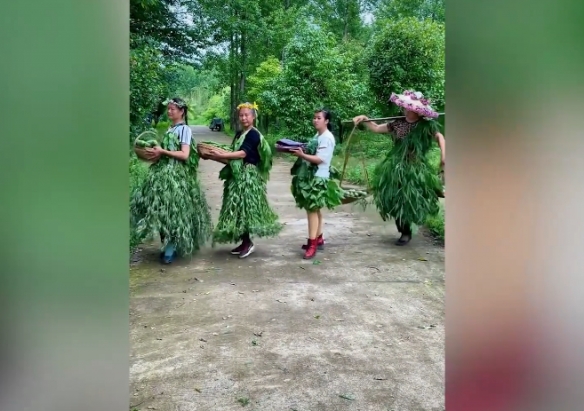 近日据报道,湖南辰溪一农村,由村民们自行组织的时装秀上演,一群农村大姐们自导自演就地取材打造了一场自制蔬菜时装秀。