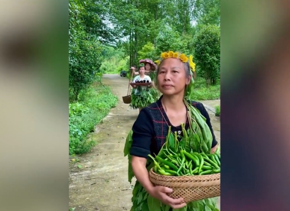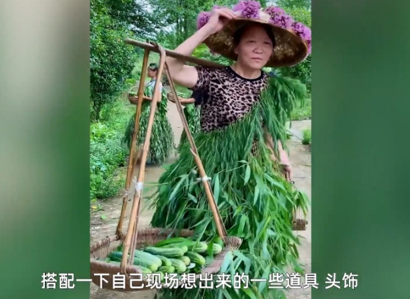 农村大妈抱自家蔬菜走秀 你对此有什么看法?