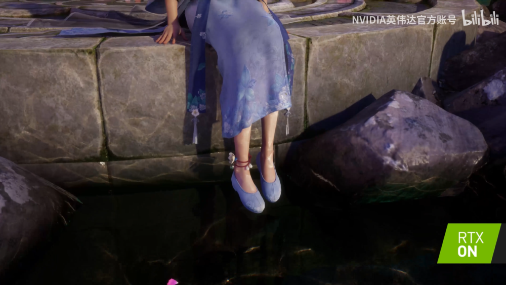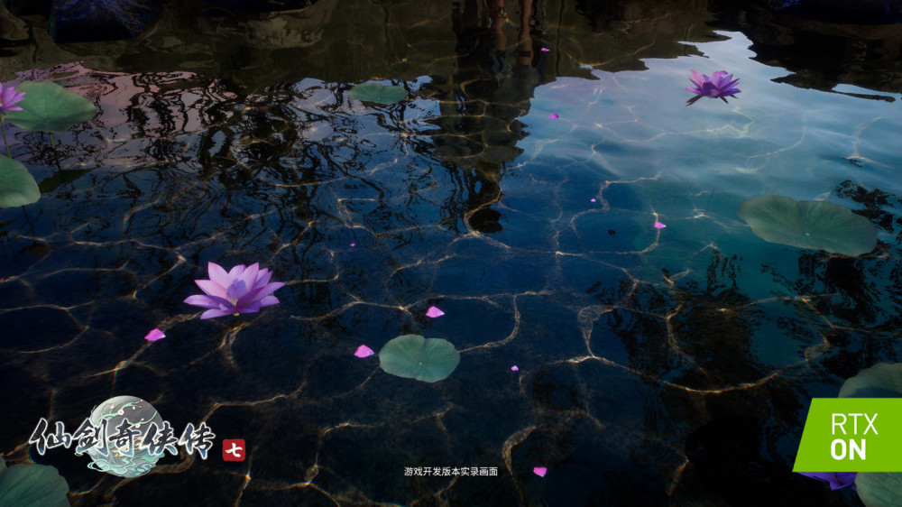 官方表示,池水使用了英伟达的 Hybrid Translucency 技术,令池水的反射效果得到了光线追踪的加持,反射效果相对于传统的 SSR 技术更加的真实逼真。焦散效果使用 NVIDIA 基于光线追踪的 Ray-Guided Water Caustics(RGWC)技术实时计算,能够让水体的焦散效果和人物产生逼真互动,两者结合,便产生了现在看到的,符合仙剑奇侠传绚丽效果的池水,这是传统渲染方法难以做到的。