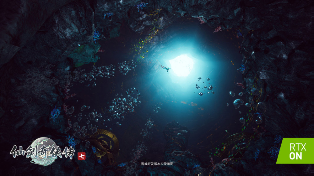 值得注意的是,《仙剑奇侠传七》在游戏中支持主角潜水行动。演示视频可以看到阳光透射如水中形成的光线条纹。水下场景同样使用了 RGWC 水焦散技术在礁石上映衬出海水的焦散波纹,让玩家在海底潜泳时的体验更加身临其境。