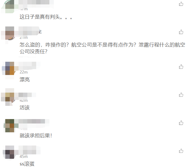 网友们纷纷在评论区里留言吐槽这日子是真有“判头”,私生饭也算是为自己的行为付出代价了,还有愤怒的网友怒斥他们活该,并指责航空公司泄露行程。