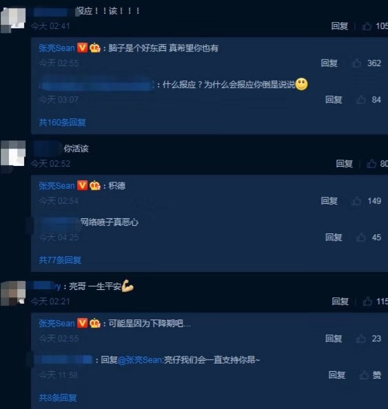 上个月末,张亮刚官宣自己已与妻子和平离婚两年了,因为当时高以翔事件,网友们纷纷质疑这是蓝台故意让张亮用离婚一事吸引注意力,因此对张亮离婚一事是各种说法都有。还有人说两个人离婚是为了买房子,反正到现在寇静也没回应,不过张亮也表示了自己与妻子是和平分手,希望大家也不要关注自己家里的私事。今日,张亮在微博晒图表示自己腿受伤了,还调侃自己居然没骨折。接着,就有网友评论“报应”“活该”,引得张亮怒怼回去,脑子是个好东西,希望你也有一有。就张亮怼恶评一事,网友对此产生了基本一致的看法和态度。