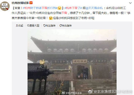杭州下雪了!径山寺工作人员证实 网友:我一定是在假杭州 0分