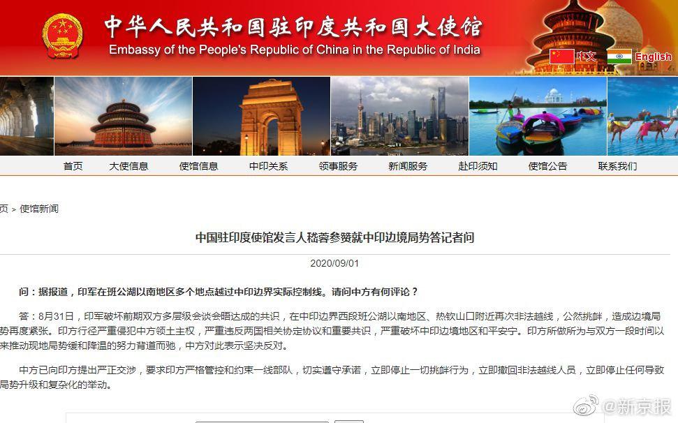 中国驻印度使馆回应印军再次非法越线